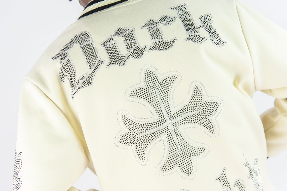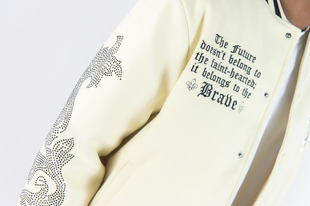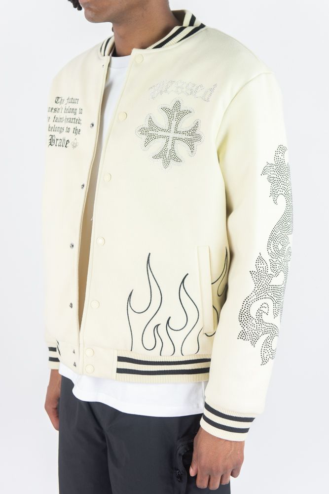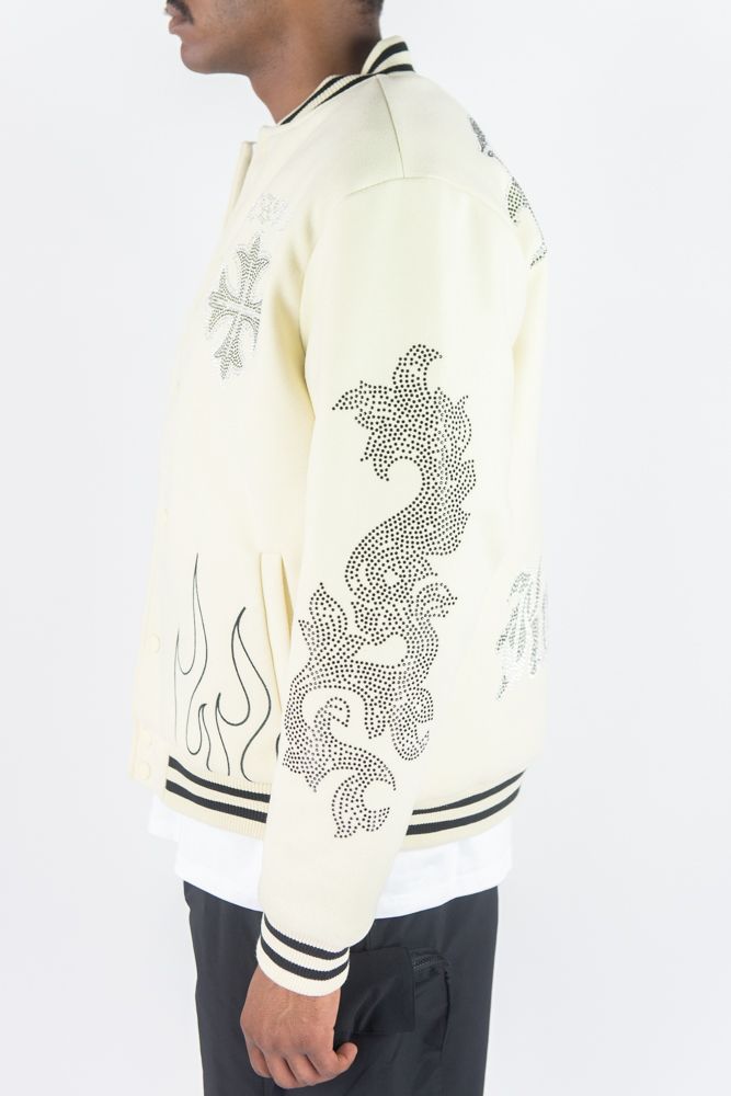 Rebel Minds Blessed Rhime Stone Varcity Jacket (Cream)