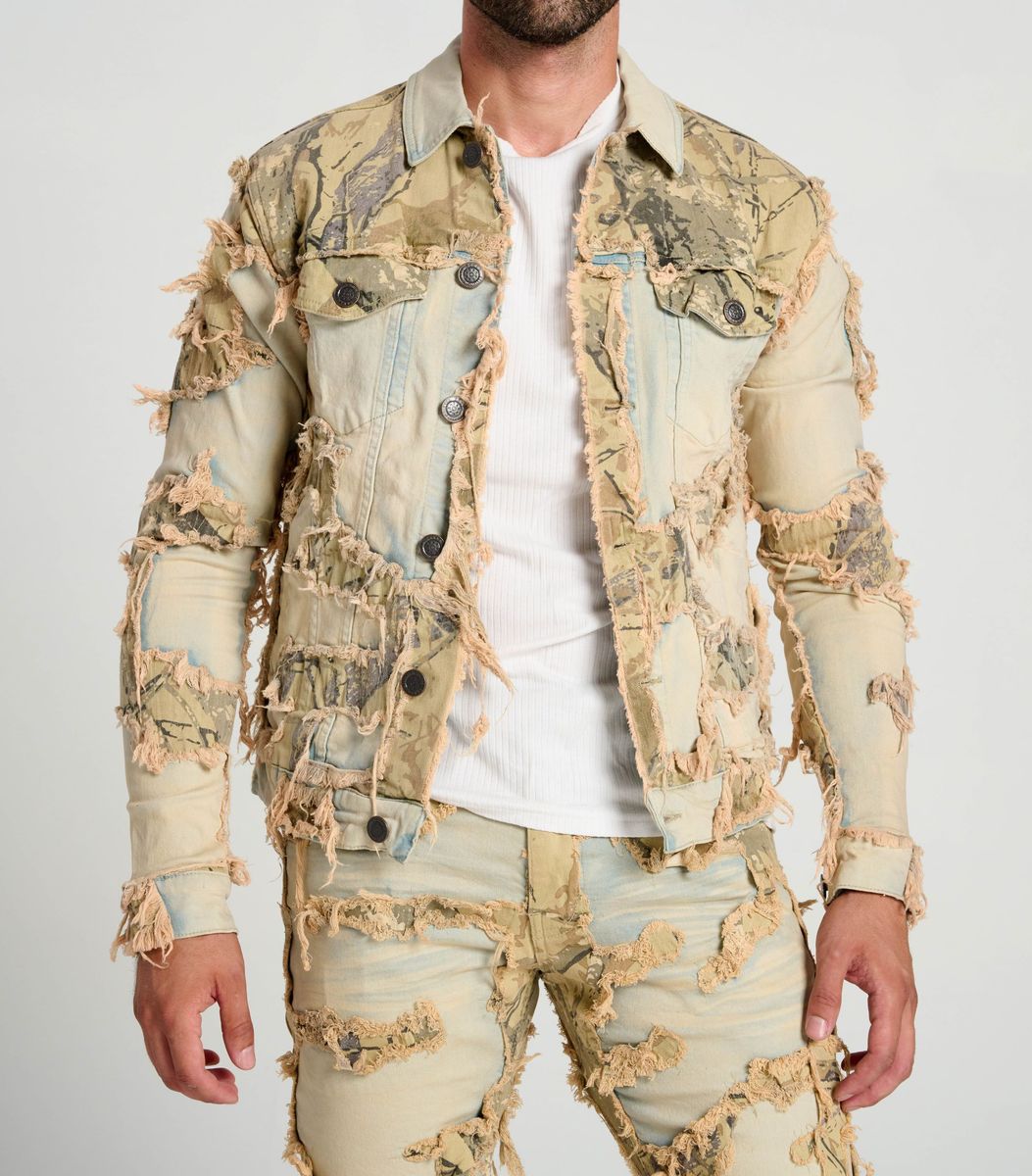 Taker Camo Pattern Patch Denim Jacket (Tint)
