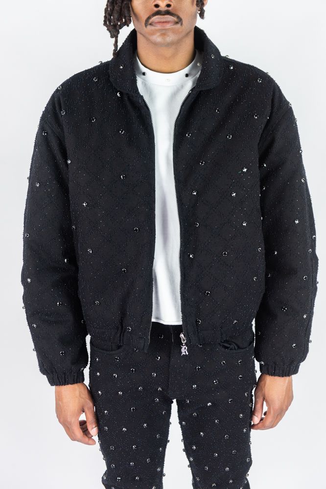 R3bel Rose Gloss Jet Black Stone Padded Bomber Jacket (Black)