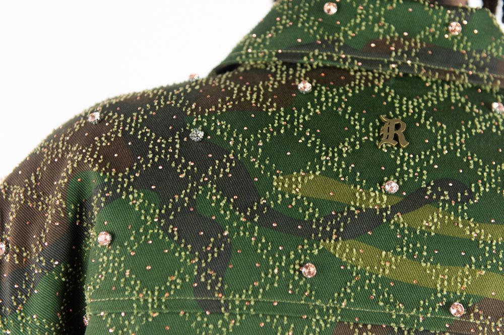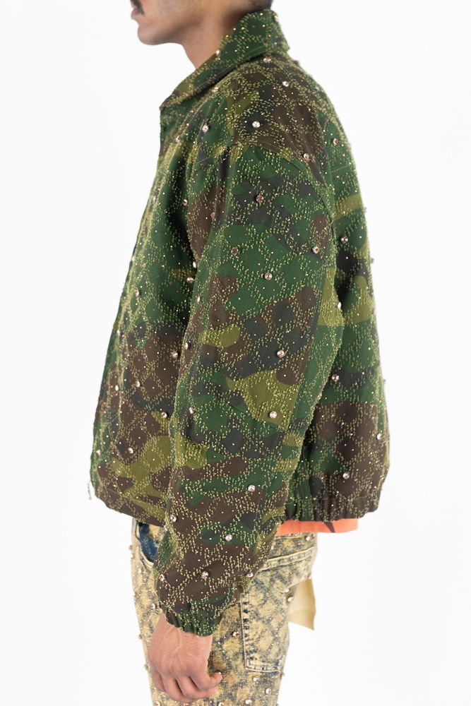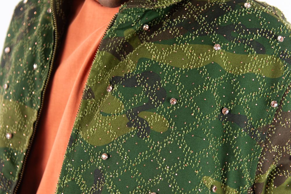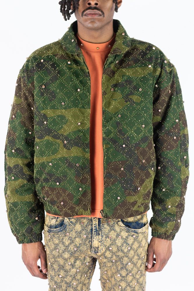R3bel Rose Gold Stone Padded Bomber Jacket (Wood Camo)