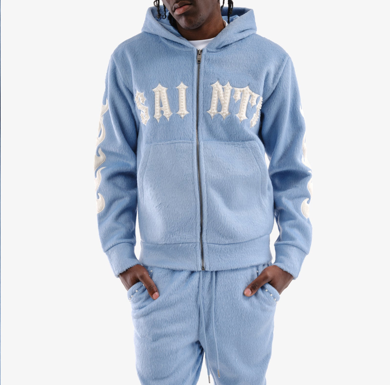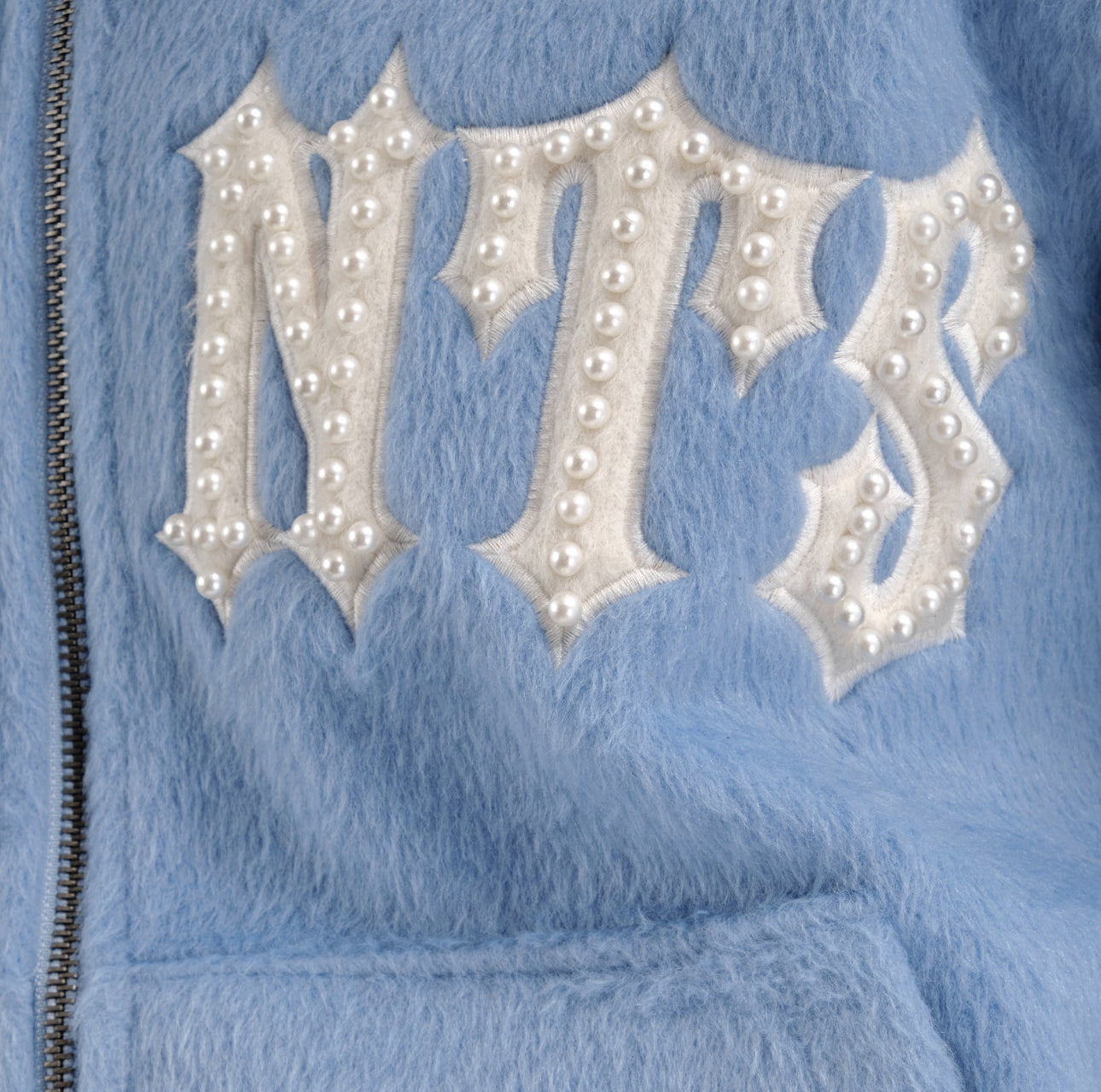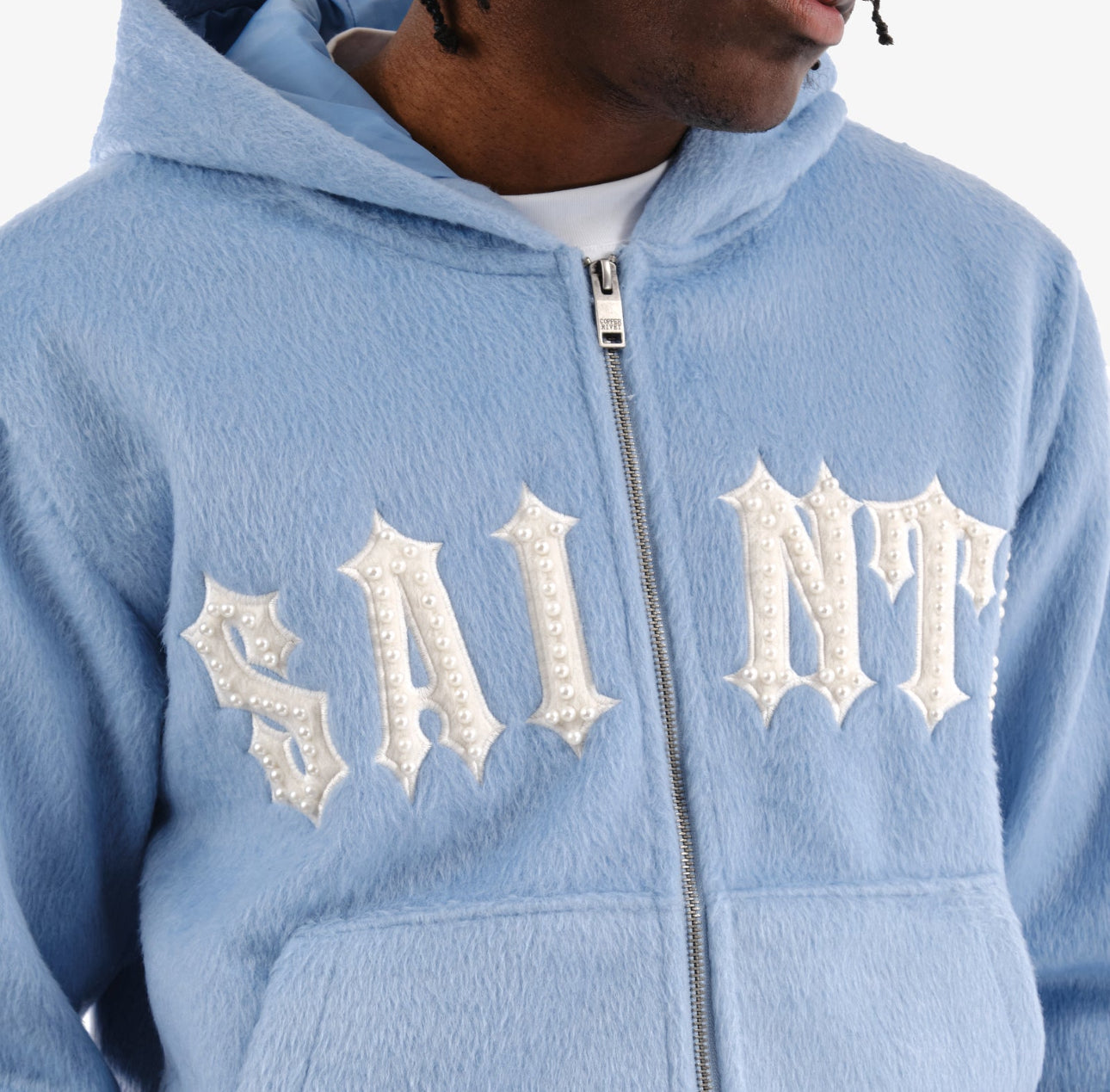 Copper Rivet Saints Mohair Hoodie with Pearl Details (Light Blue)