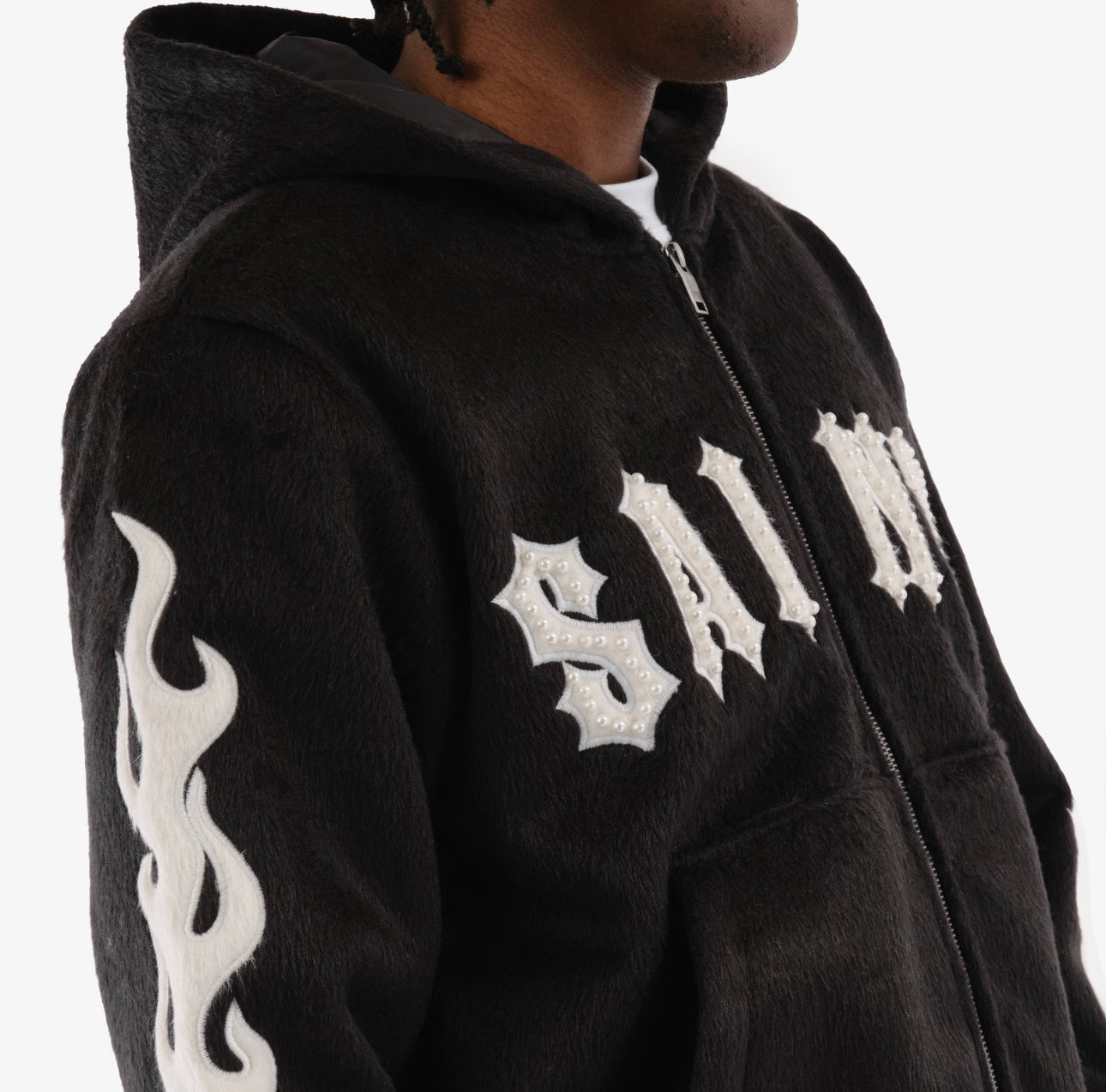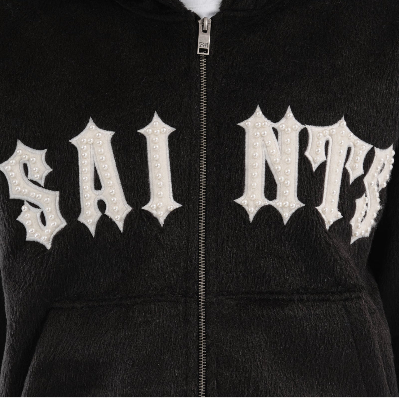 Copper Rivet Saints Mohair Hoodie with Pearl Details (Black)